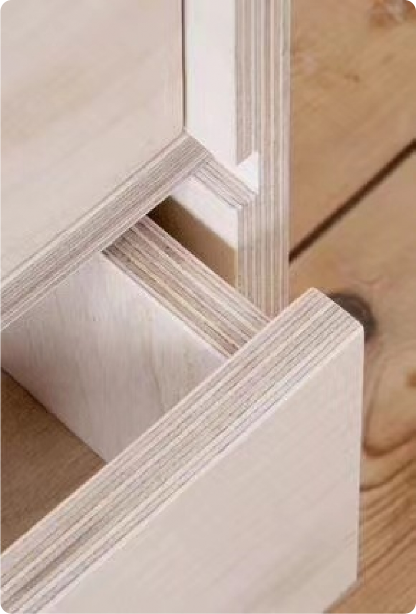 2. 桉木整芯的結構革命 精選650kg/m³ 以上的高密度桉木 ,通過13層45°交叉層壓工藝 ,構建"井"字型抗變形結構 ,解決傳統板材"順紋易彎、橫紋易斷"的難題。